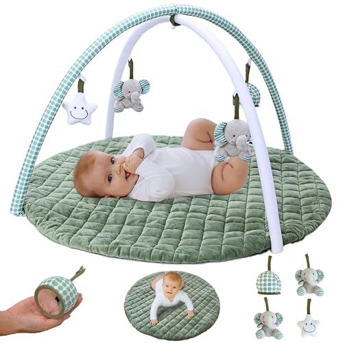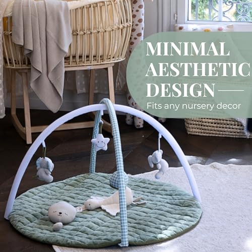 Gender Neutral Baby Play Gym Mat – Plush tummy time baby gym – Sage Green Baby activity mat for baby – Newborn Play mat for babies – Aesthetic baby play mat activity gym – Toodly