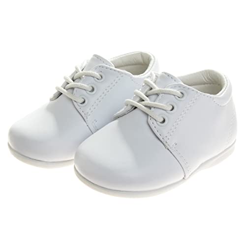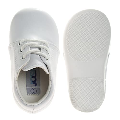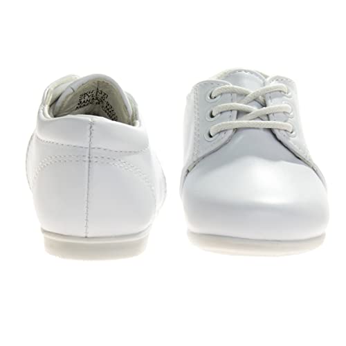 Josmo Baby Walking Shoes Laceup Learn to Walk Training Booties – First Step Kids Formal Dress Shoe Loafer Oxford Saddle – Walker White (Size 3 Infant)