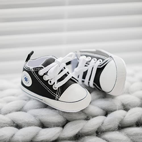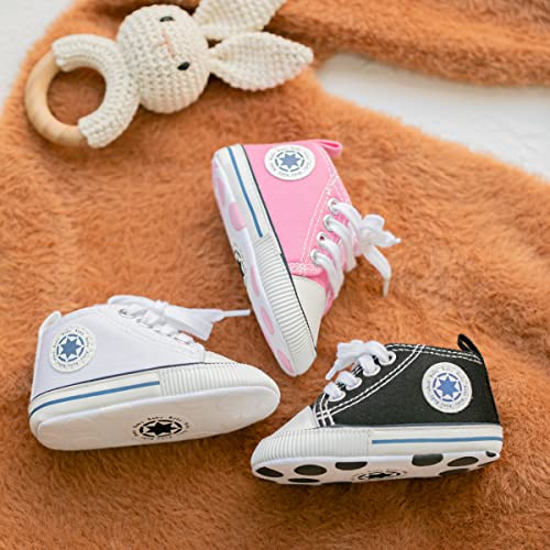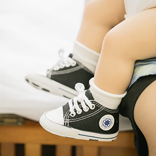 KIDSUN Unisex Baby Boys Girls High Top Sneaker Soft Anti-Slip Sole Newborn Infant First Walkers Canvas Denim Shoes