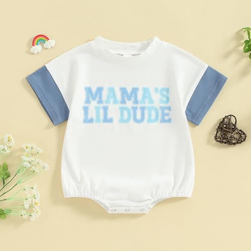 Baby Boy Bubble Romper Daddys/Mamas Lil Dude Color Block Short Sleeve Oversized Bodysuit Newborn Summer Outfit