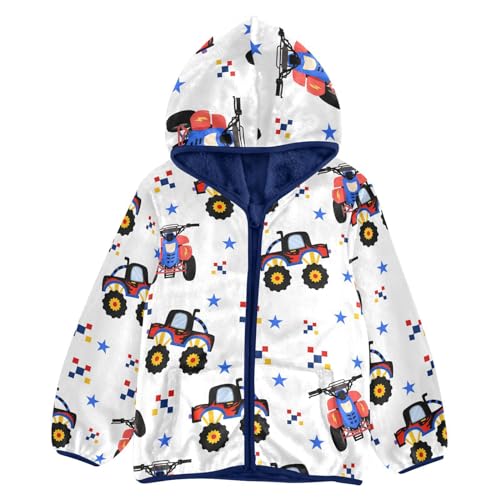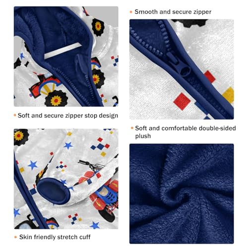 Monster Blue Truck Sherpa Fleece Girls Toddler Boy Hoodie Navy Blue Lightweight Zip 3T