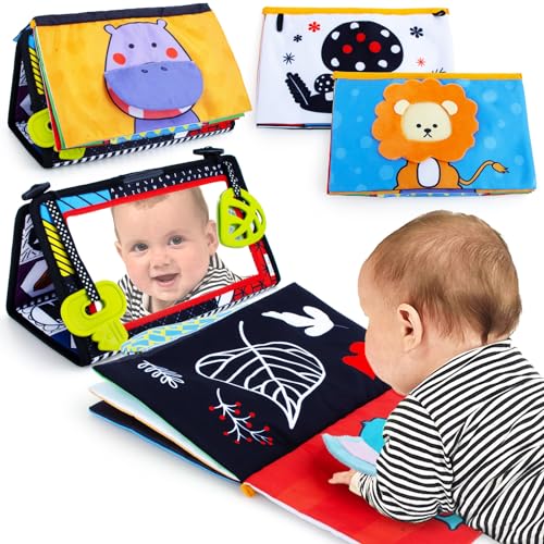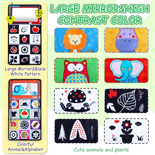 teytoy Tummy Time Mirror Infant Toys 0-3 Months Brain Developmental Baby Mirror Tummy Time Toys with Cloth Book&Teethers,High Contrast Black and White Baby Toys 4 6 9 12 Month Toy