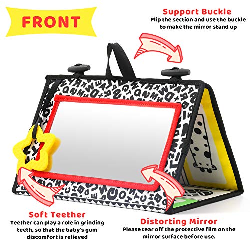 Tummy Time Mirror Toys for Babies, High Contrast Activity Montessori Newborn Toys, Black and White Baby Toys 0 3 6 12 Sensory Infant 0-3 Months