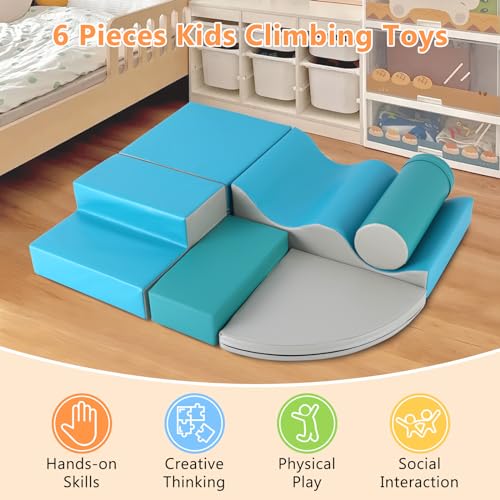 Foam Climbing Blocks Set, 6 PCs Kids Soft Foam Activity Playset Toddler Climbing Toys Indoor Crawling & Sliding Play Toys for Toddlers 1-3 Years Old, Lightweight Climbing Blocks for Babies