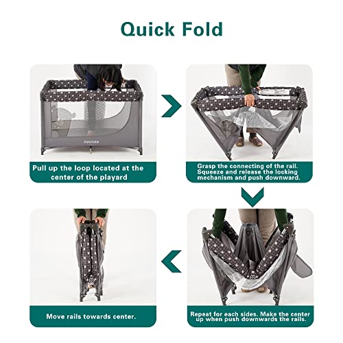 Pamo Babe Portable Crib Baby Playpen with Mattress and Carry Bag (Grey)