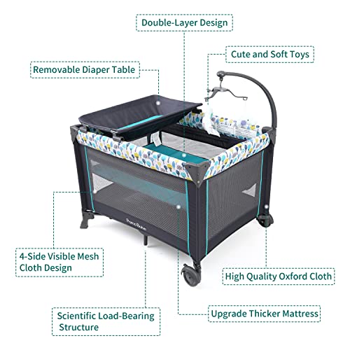 Portable Crib for Baby, Portable Baby Playpen with Detachable Bassinet and Changing Table