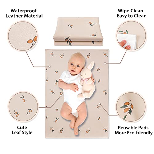 Vegan Leather Baby Changing Mat – Wipeable Portable Changing Pad, Foldable Travel Changing Mat for Baby, Newborns Toddlers Shower Gifts (Branch,20″*28″)
