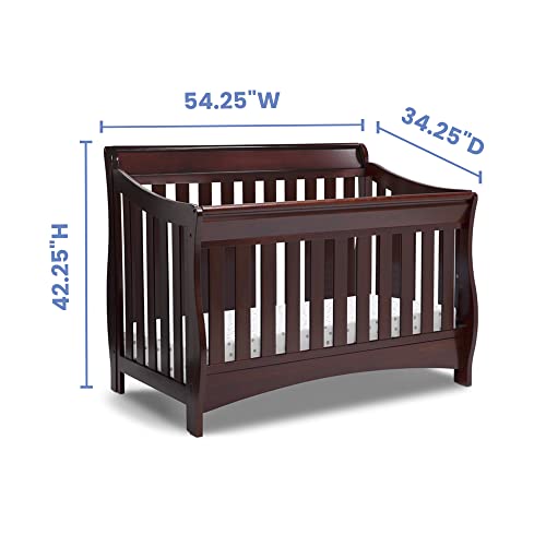 Featuring a beautiful, understated sleigh silhouette, the Bentley ‘S’ Series 4-in-1 Crib from Delta Children delivers functionality and outstanding value for years to come. Made of solid hardwood, this multi-positional crib is built to handle anything your child throws its way and easily adapts to a cozy toddler bed, daybed and full size bed (Toddler Guardrail and Crib Conversion Rails sold separately).