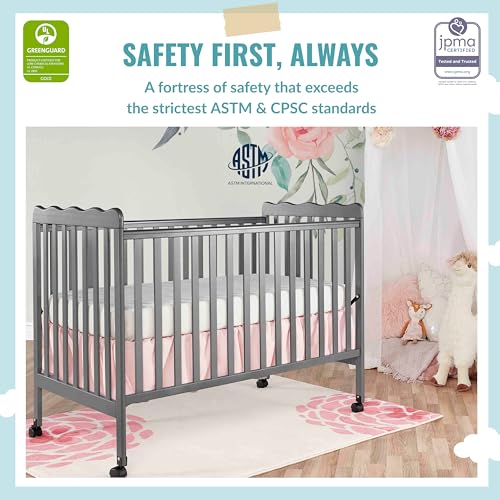 SAFETY FIRST: Comes with a stationary (non-drop side) rail design for added security. Tested by 3rd party labs for lead/other toxic elements to meet/exceed CPSC/ASTM safety standards.