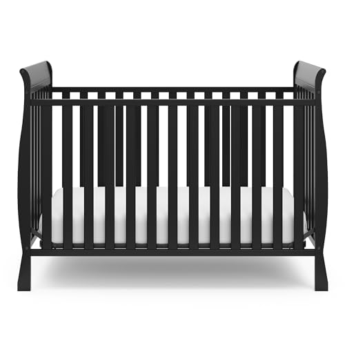 Storkcraft Maxwell Convertible Crib (Black) – GREENGUARD Gold Certified, Converts to Toddler Bed and Daybed, Fits Standard Full-Size Crib Mattress, Classic Crib with Traditional Sleigh Design