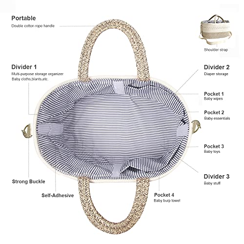 Baby Diaper Caddy Organizer, Shoulder Strap Buckle, 4 Inner Pockets Portable Nursery Storage Basket with Detachable Compartments,100% Cotton Woven Bin (Small, Yellow)