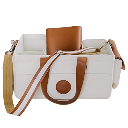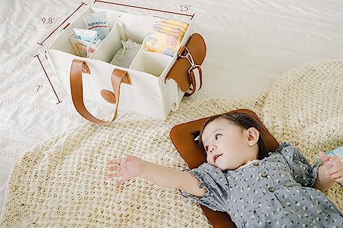 Baby Diaper Caddy Organizer with Changing Mat, Top Baby Shower Basket, Customizable Inserts, Portable Diaper Changing Station, Felt with Faux Leather Handles & Extra Pockets for Mothers