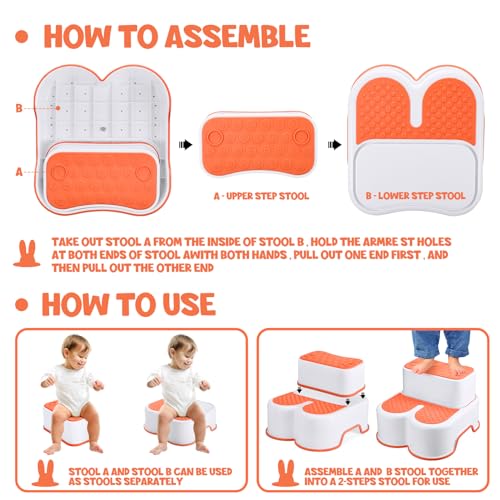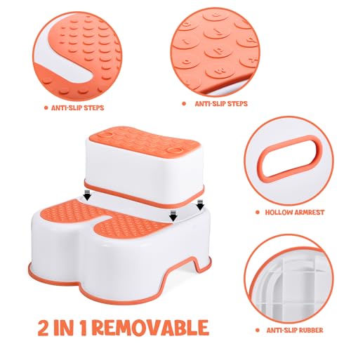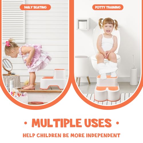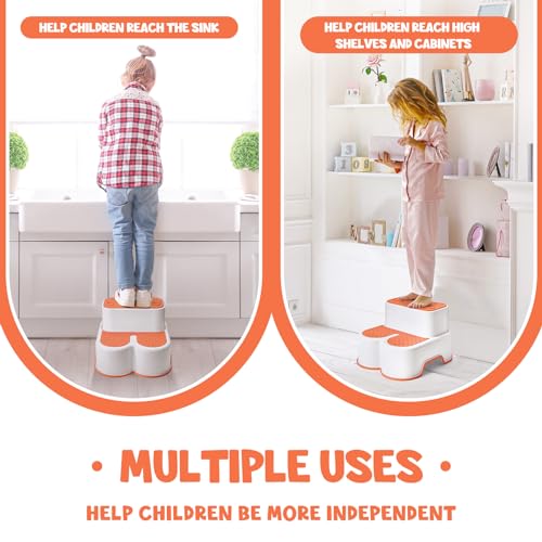ACSTEP 2 Step Stools for Kids, Toddler Step Stool for Bathroom Sink, Toilet Stool with Anti-Slip Strips, Kitchen Helper – Sturdy and Easy to Assemble, Perfect Height for Kids Pumpkin Orange