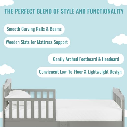 STYLISH DESIGN: The Dream On Me Classic Design Toddler Bed is ideal for toddlers as they make the transition from a crib to a bed; Minimalist in design, the solid wooden bed has gently arched head and footboards and smooth curving rails and beams