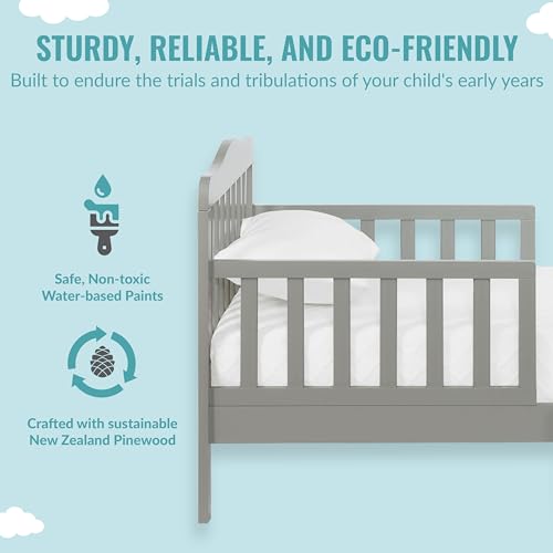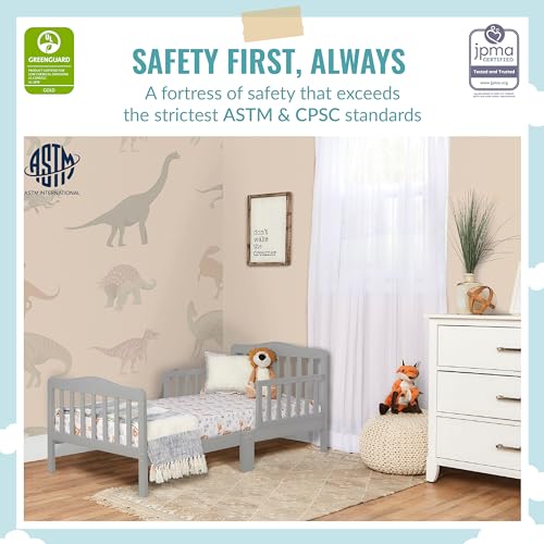 SAFETY FIRST: The toddler bed is JPMA certified and designed to meet or exceed all applicable ASTM and CPSC standards; It is free of phthalates, latex, lead and BPA and its design is ergonomic, stable and sturdy