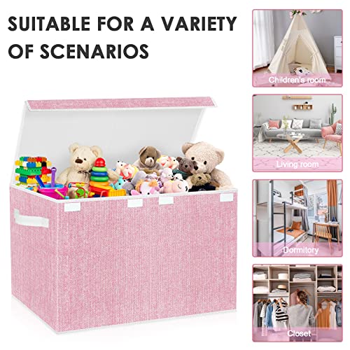 🎀 STURDY & DURABLE: This pink kids toy box for girls is strong structured by 2.5mm thick sturdy cardboard, surface covered with premium durable non-woven fabric, both handles are sewn through cardboard for high load bearing. You can rest assured about the quality and use this toy bin storage organizer with confidence.