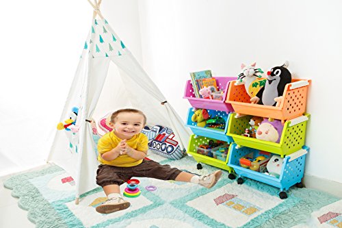 Kids’ Toys Storage Organizer Bins Baskets with Wheels Can Move Everywhere Large 4 Baskets Natural/Primary (Primary Collection) (Purple&Blue&Orange&Green)