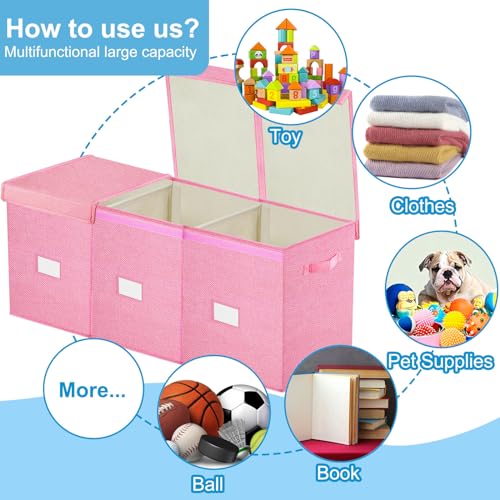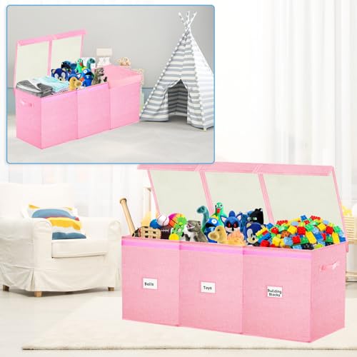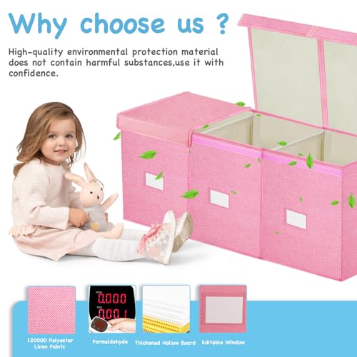 Large Toy Box Chest,Big Toy Storage Organizer,Storage Bins with Lids,Stuffed Animal Storage,Toy Bins for Kids Extra Large,Toddlers,Baby,Girls,Nursery,Living room,playroom(Pink)