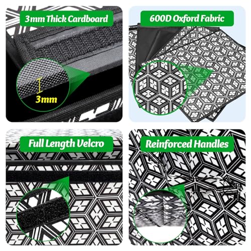 【NOT EASY TO BENDING】Exterior is made of high quality sturdy 600D OXFORD fabric, breathable non-woven fabric on the inside. Sides, bottom, inserts and lid are reinforced with 3mm thicker cardboard, not easy to bend or falling apart, adds durability and stackability to large storage bin. Very sturdier and durable without worrying active babies breaking or bending it.
