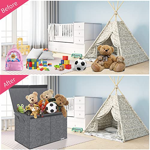 Friday Monkey Large Toys Box Storage Organizer with Lid & Comfortable Handles, Collapsible Sturdy Toy Chest Boxes Bins Baskets for Kids, Boys, Girls, Playroom, 25x13x16inch, Dark Grey, ZMBCWJX
