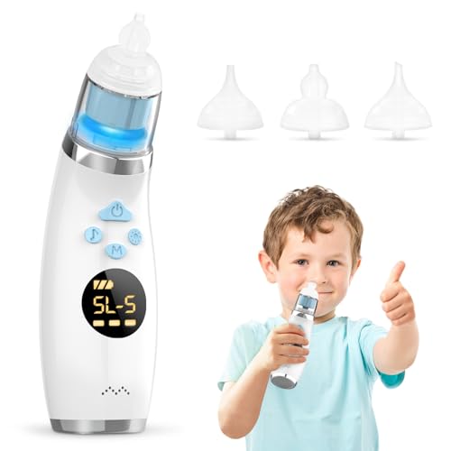 Electric Nasal Aspirator,Waterproof Nose Suction for Baby, Nose Sucker with 3 Silicone Tips,Rechargeable Nose Cleaner for Toddler with 5 Suction Levels,Nose Aspirator with Music & Light