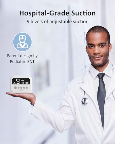 EFFICIENT RELIEF WITH HOSPITAL-GRADE SUCTION: This Hospital Grade nasal aspirator features 9 adjustable levels of suction for instant relief, it’s easier and more effective to clear fluid or dry mucus instantly. Help your baby keep breathing smoothly, and have a peaceful sleep