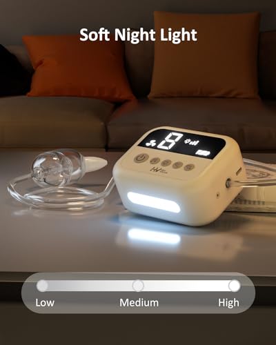 INNOVATIVE AMBIENT NIGHT LIGHT DESIGN: The nasal aspirator for baby is equipped with a soft and warm ambient night light and soothing music, It makes the cleaning process easier and quicker. In addition, the night light is in 3 levels, it’s great for relaxing background illumination, diaper change, reading.