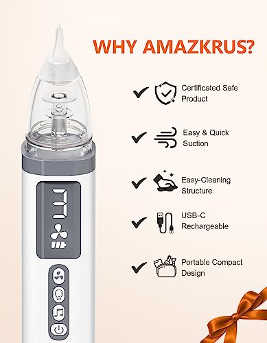 CLEAR GUNK OUT: Say goodbye to sleepless nights! Our baby nasal aspirator with three adjustable suction modes up to 70KPA is designed to gently suck out all the snot without causing any discomfort or pain, so your little one can breathe easier and sleep better.r with three adjustable suction modes up to 70KPA is designed to gently suck out all the snot without causing any discomfort or pain, so your little one can breathe easier and sleep better.