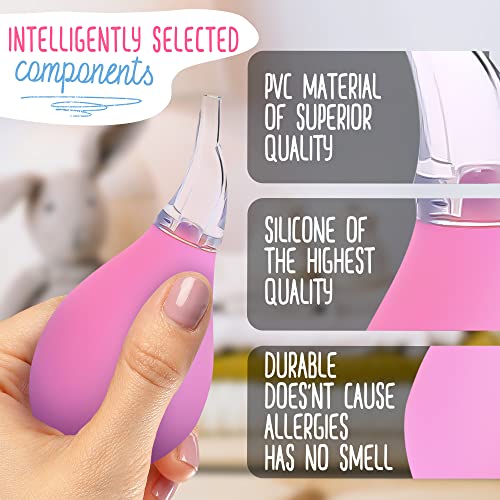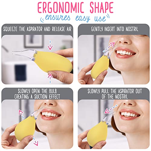 Easy to Use: The infant nose sucker is c with powerful suction by pressing the PVC pump, release the pump slowly after placing the spout on the mucus for super quick removal, nasal aspirators is also so easy to take apart and put back together for cleaning purposes.