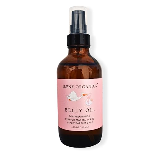 Belly Oil For Pregnancy Stretch Marks by Irene Organics, Fast Absorbing and Hydrates Itchy Pregnant Skin with Organic Effective Ingredients – 4oz