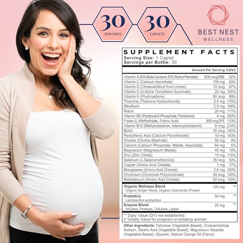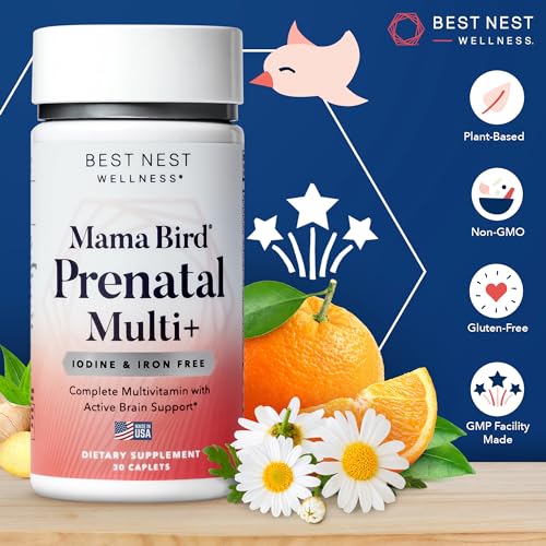 Best Nest Wellness Mama Bird Prenatal Vitamin Iron Free, No Iron or Iodine, Methylfolate (Folic Acid for Pregnant Women), Natural Organic Herbal Blend, Vegan, Once Daily (30 Count)