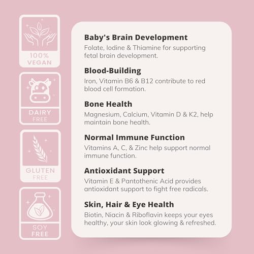 COMPREHENSIVE PRENATAL VITAMINS FOR WOMEN:- Our pre natal multivitamin for women contains all the essential vitamins and minerals needed to promote healthy embryonic growth. Thanks to our uniquely complete blend of vegan prenatal vitamins, your baby will get everything they need during the most important stages of pregnancy, aiding development of the heart, lungs, kidneys, eyes, and bones as well as the circulatory, respiratory, and central nervous systems.