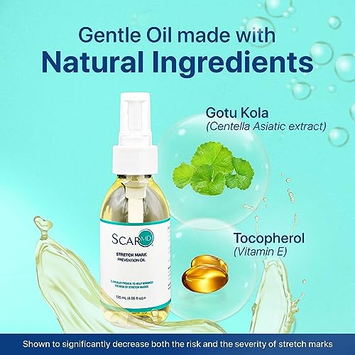 ScarMD Stretch Mark Oil, Minimizes the Risk and Severity of Stretch Marks, Gentle Belly Oil for Pregnancy, Made of Natural Ingredients, Suitable for Adults and Children, 120mL