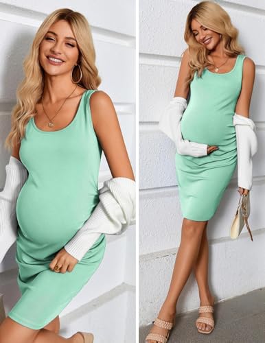 Ekouaer Womens Summer Maternity Dress Side Ruching Sleeveless Maternity Tank Dress Cute Pregnancy Dress S-XXL