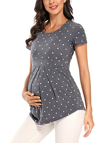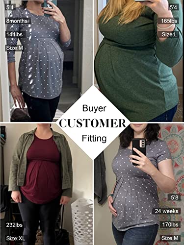 Glampunch Women’s Maternity Tops Short&3/4 Sleeve Round Neck Front Pleat Peplum Tunic Top Pregnancy Shirts