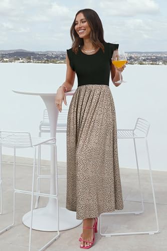 OUGES Women 2024 Spring Summer Dresses Maternity Sleeveless Ribbed Fashion Casual Outfits Maxi Dress with Pockets