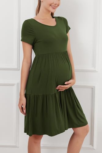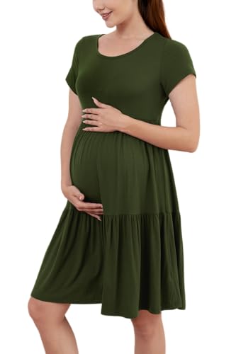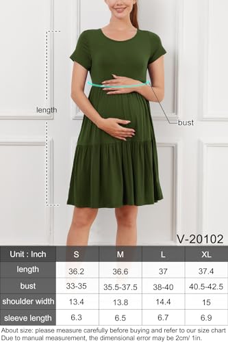 PARNIXS Women’s Summer Short Sleeve Maternity Dress Patchwork Pregnancy Clothes