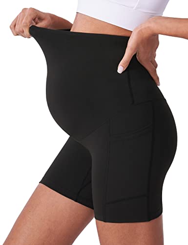 POSHDIVAH Maternity Shorts for Women Over Belly Biker Workout Yoga Active Summer Pregnancy Running Short Leggings 5″