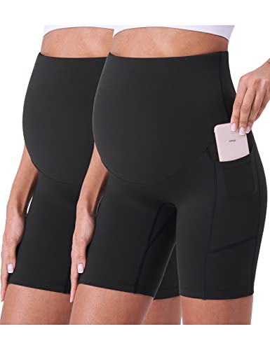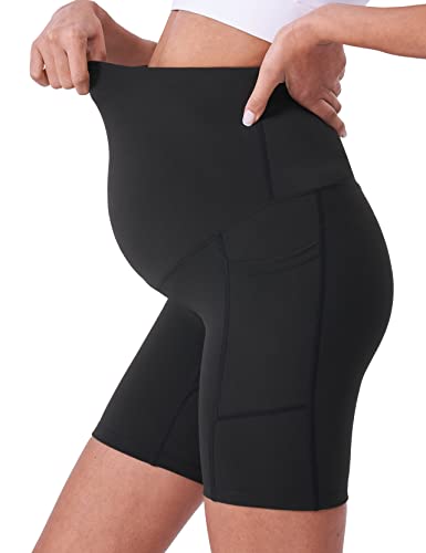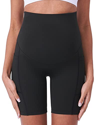POSHDIVAH Women’s Maternity Shorts Over The Belly Biker Yoga Active Pregnancy Workout Short Pants with Pockets 8″