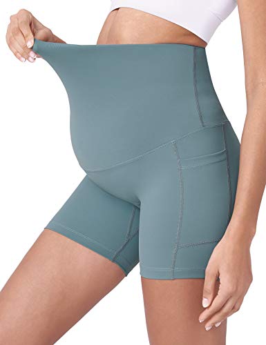 POSHDIVAH Women’s Maternity Yoga Shorts Over The Belly Bump Summer Workout Running Active Short Pants with Pockets 5″/8″