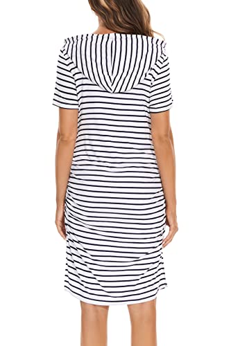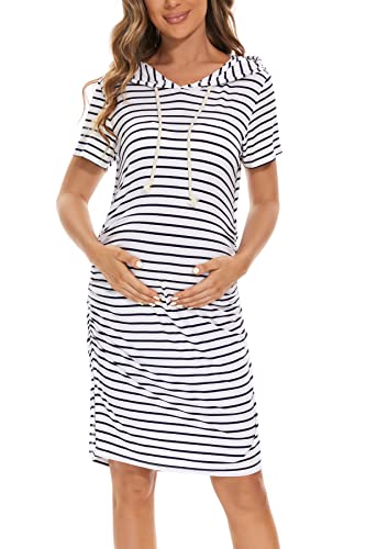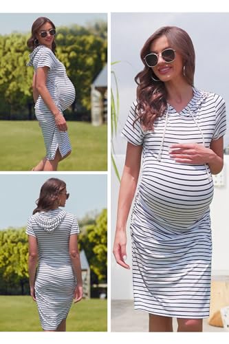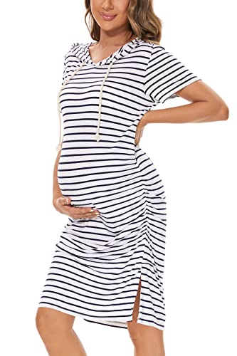 Women’s Maternity Hoodie Dress Short Sleeve Split Side Ruched Pregnancy Clothes