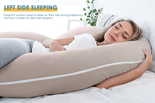 INSEN Pregnancy Pillow,Maternity Body Pillow with Velvet Cover,C Shaped Body Pillow for Sleeping (Cooling Cotton-Apricot)