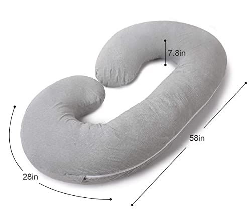 INSEN Pregnancy Pillow,Maternity Body Pillow with Velvet Cover,C Shaped Body Pillow for Sleeping (Grey Jersey)
