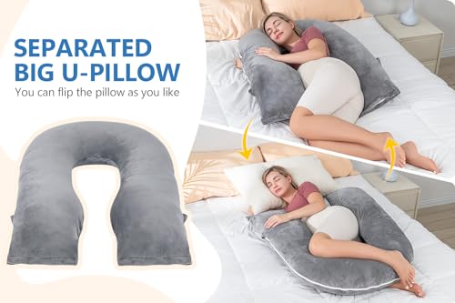 INSEN Pregnancy Pillows, Detachable Body Pillow for Sleeping, Nurse & Relax, Multi-Use Pregnancy Pillows for Pregnant Women, Grey