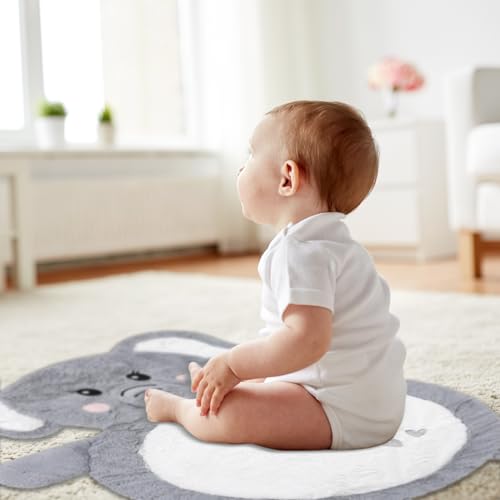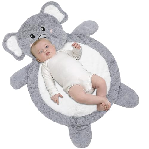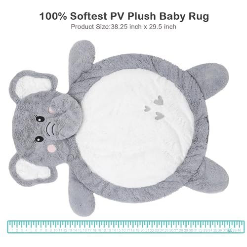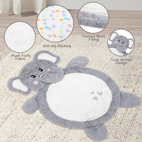 Little Grape Land Baby Floor Play Mat, 38 x 29.5 Inch Plush Stuffed Elephant Animal Baby Mat for Floor Tummy Time, Foldable and Machine Washable Crawling Infant Baby Mat Nursery Rug
